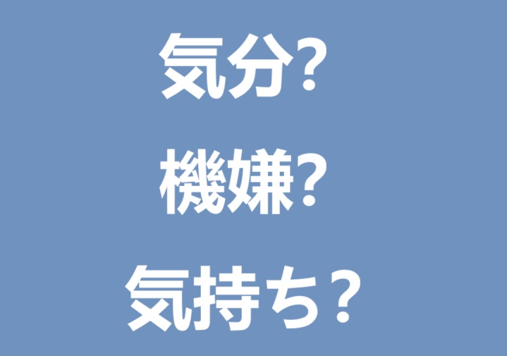 2️⃣ 気分 (kibun) → Overall mood or how you feel in general (mental or physical). Often used when the feeling is temporary or when you’re not feeling well.
